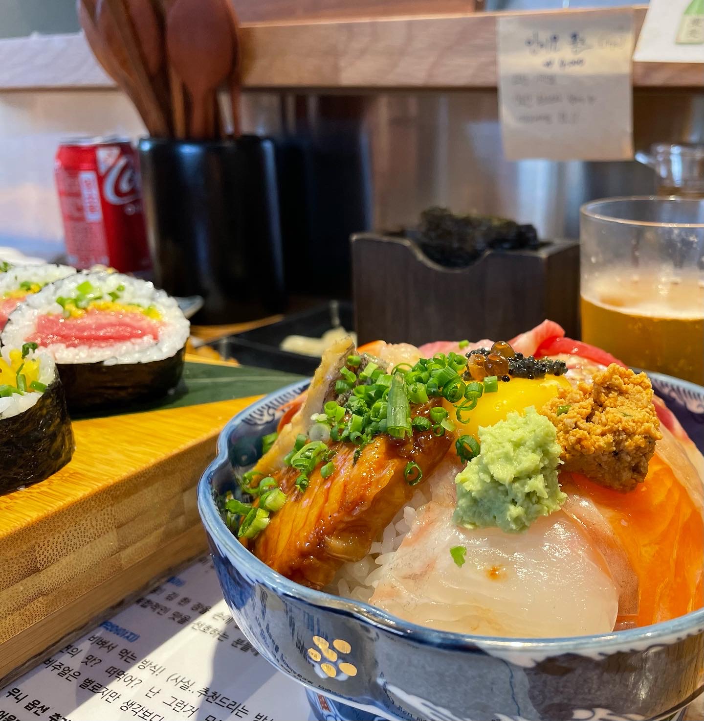 참치를 좋아해서 삼덕마끼는 당연히 맛있었고, 보통 여러가지 생선이 함께 올라간 덮밥은 특별히 맛있지 않는 부위가 올라가져 있을 때가 많은 데 시부야동은 회 한점 한점 재료의 맛이 잘 느껴져서 좋았습니다. 곁들임으로 김과 씻은 김치, 생강이 함꼐 나오는데 자칫 느끼할 수 있는 메뉴에 김치가 아주 잘어울렸습니다.